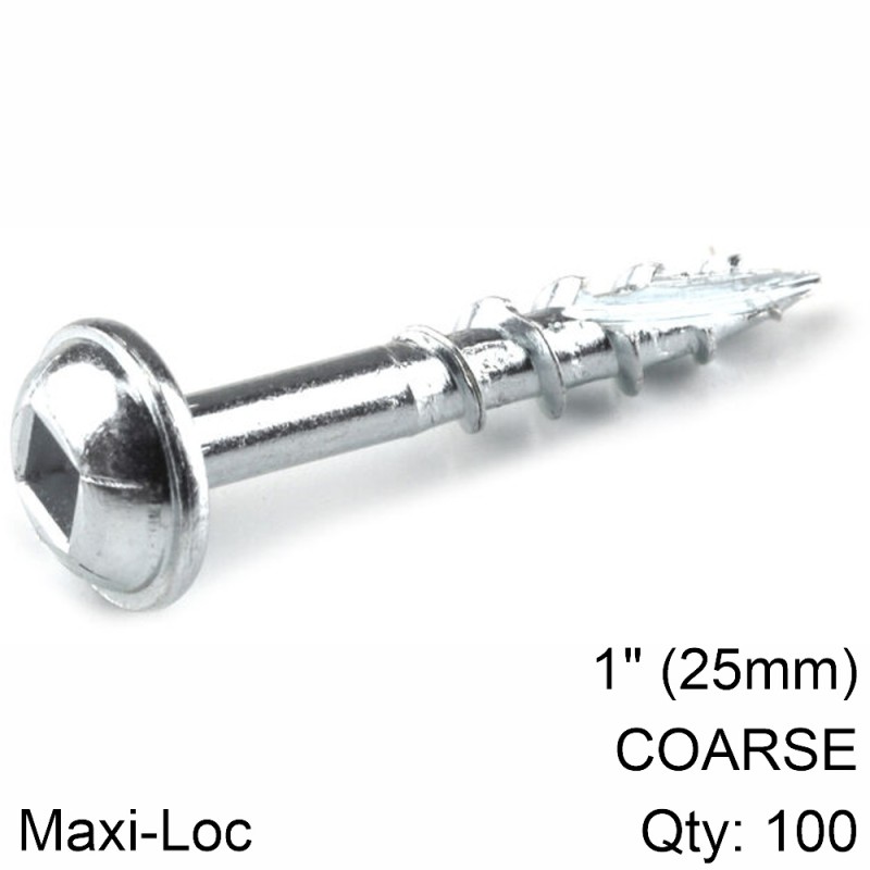 Zinc Pocket-Hole Screws: Maxi-Loc 1' (25mm) Coarse thread Qty:100
