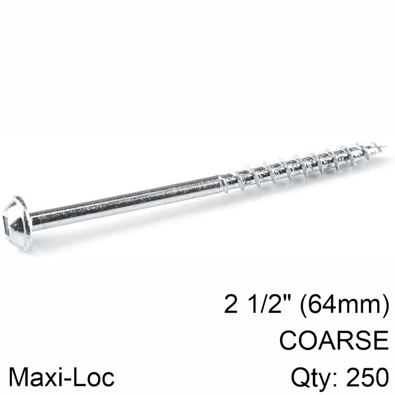 Zinc Pocket-Hole Screws: Maxi-Loc 2 1/2' (64mm) Coarse thread Qty:250