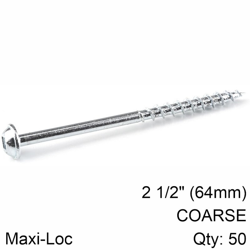 Zinc Pocket-Hole Screws: Maxi-Loc 2 1/2' (64mm) Coarse thread Qty:50