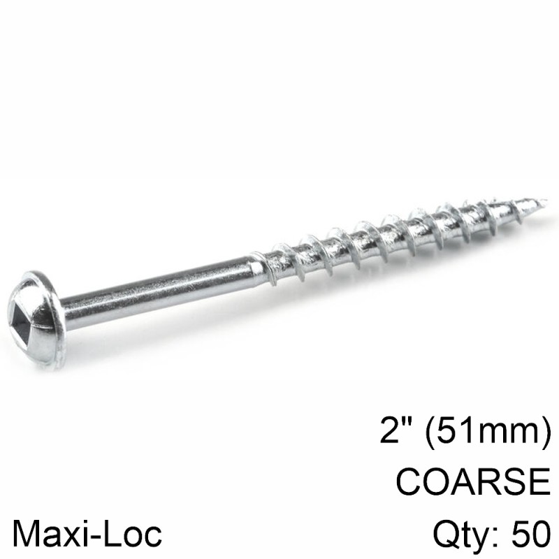 Zinc Pocket-Hole Screws: Maxi-Loc 2' (51mm) Coarse thread Qty:50