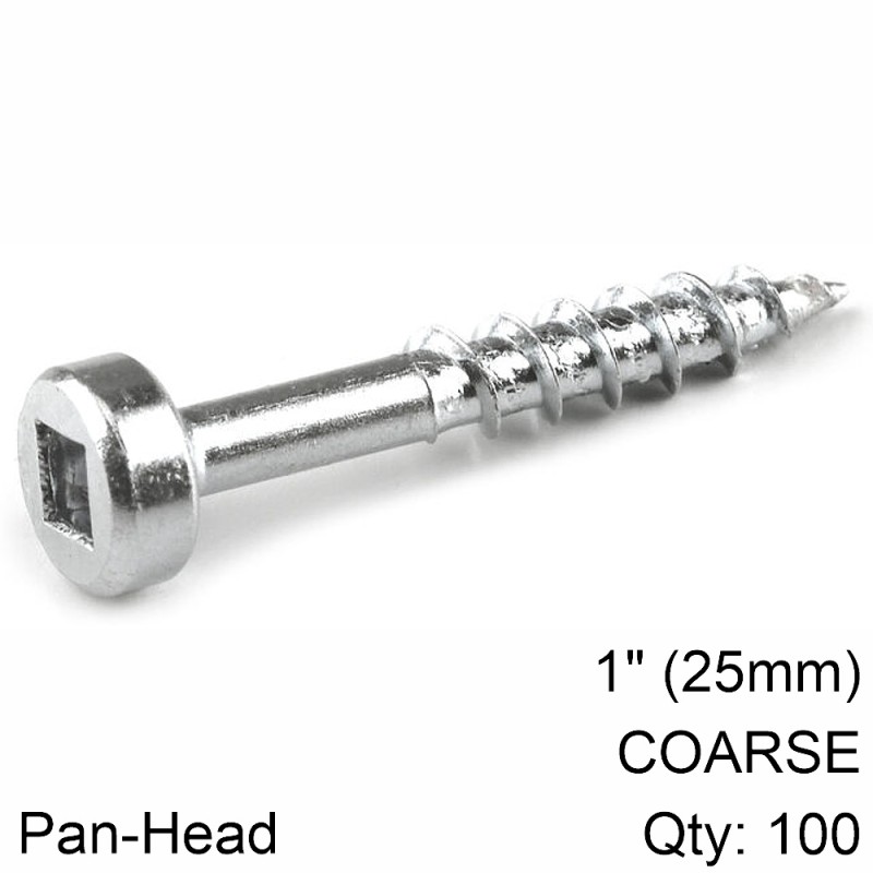 Zinc Pocket-Hole Screws: Pan-Head 1' (25mm) Coarse thread Qty:100