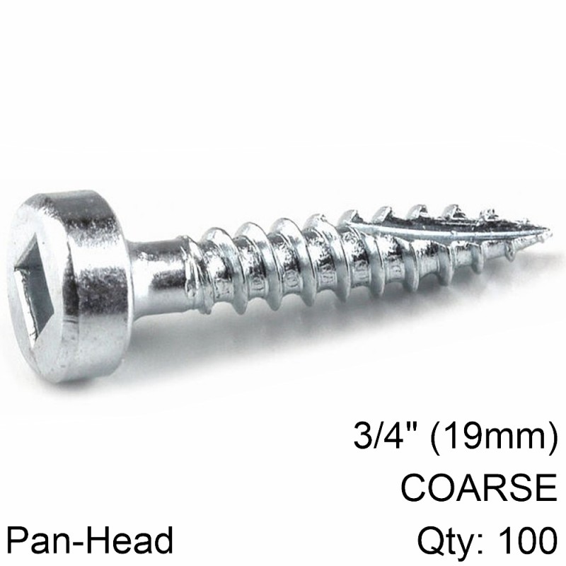 Zinc Pocket-Hole Screws: Pan-Head 3/4' (19mm) Fine thread Qty:100