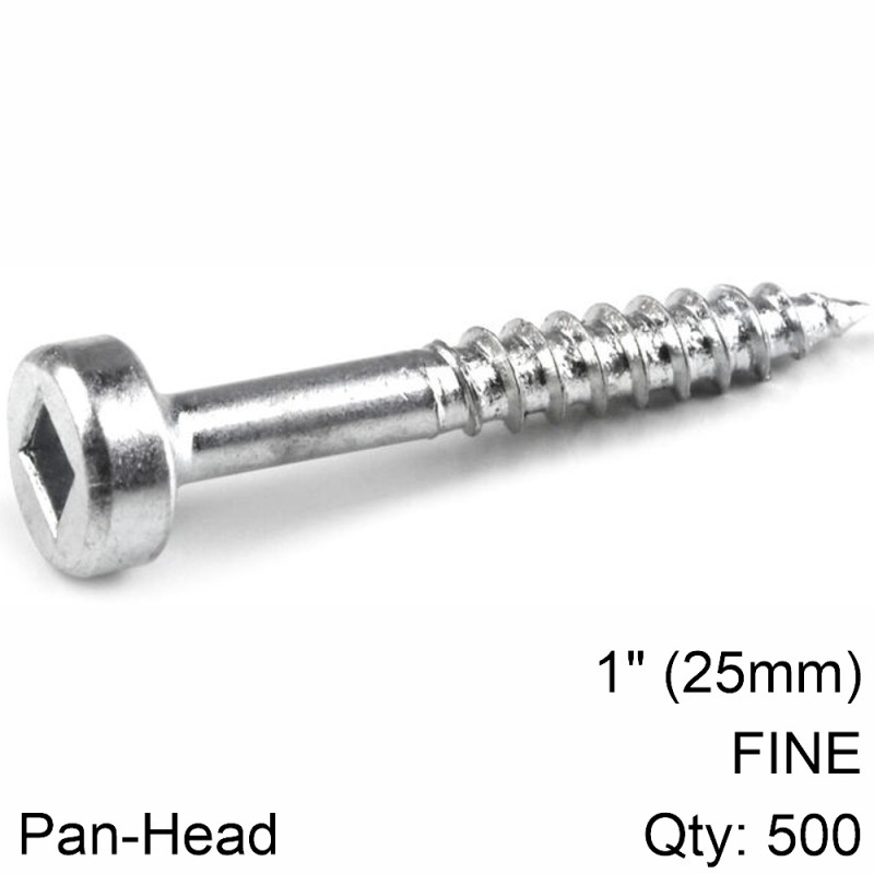 Zinc Pocket-Hole Screws: Pan-Head 1' (25mm) Fine thread Qty:500