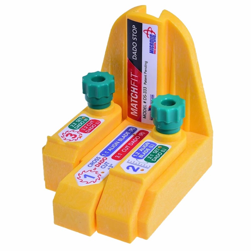 Only by using the material being fitted to the groove can you make an exact setup gauge. MATCHFIT Dado Stop locks in the positions of your first and end cut of the dado.