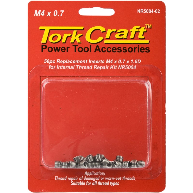 Tork Craft inserts are for permanently repairing tapped holes which have been stripped or damaged due to wear, corrosion, and over-torqing.