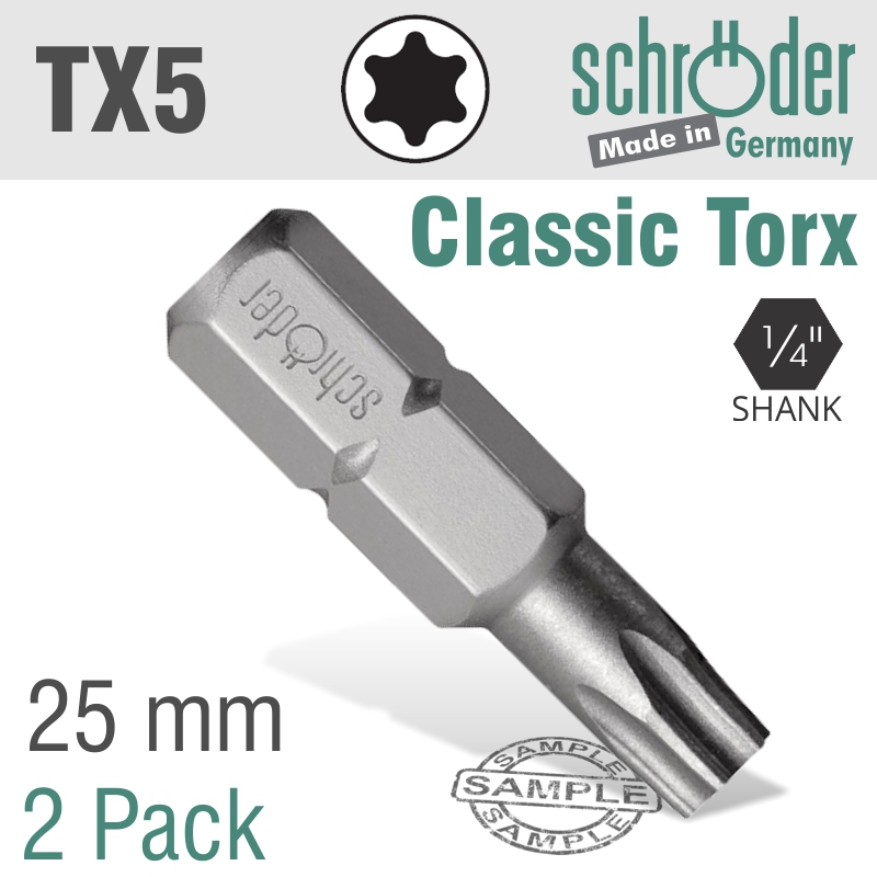 TORX TX5 CLASSIC BIT 25MM 2CD