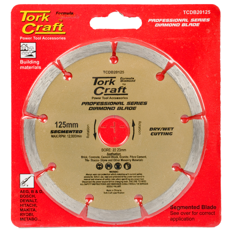 Professional Series Diamond Blade with Segmented Rim for building materials. Standard 22.23mm bore size to fit all makes of handheld angle grinders.