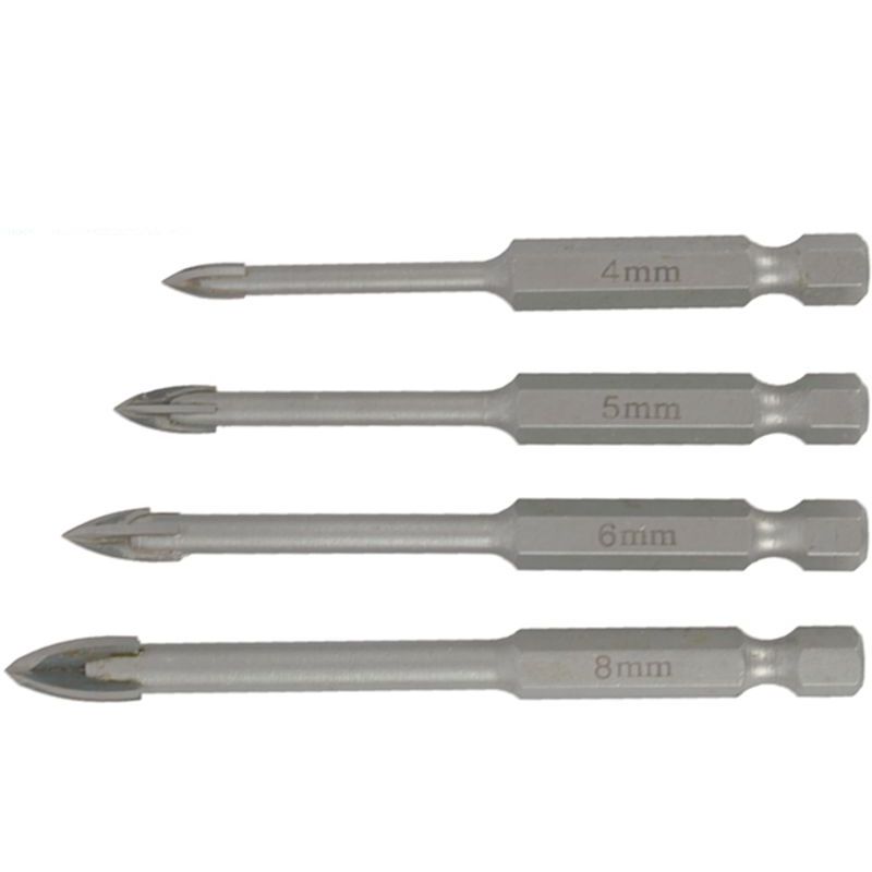GLASS & TILE DRILL 4 FLUTE SET 4PC 4/5/6/8MM IN PLASTIC CASE