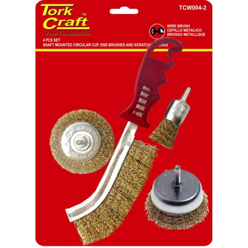 WIRE BRUSH SET 4PCE WITH HAND BRUSH