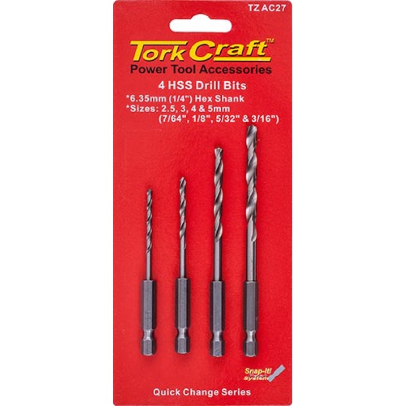 HEX SHANK DRILL BIT 4 PCE SET 2.5MM 3MM 4MM 5MM
