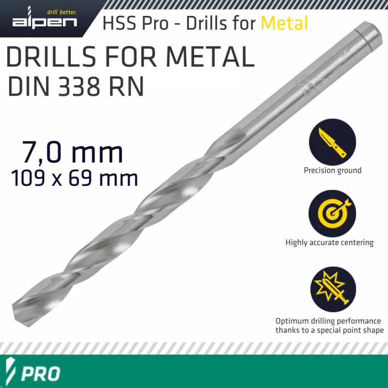 ALPEN PRO HSS 7MM DRILL DIN 338 RN 135 SPLIT POINT PLASTIC WALLET