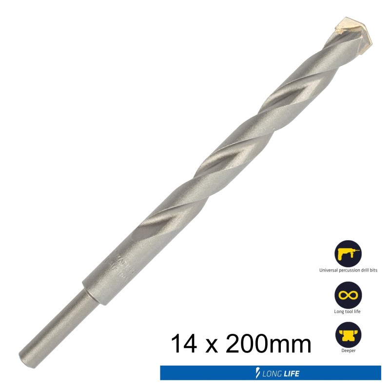 Masonry drill bit type Long Life, milled flutes, for percussion and rotary drilling in concrete, brick and natural stone.