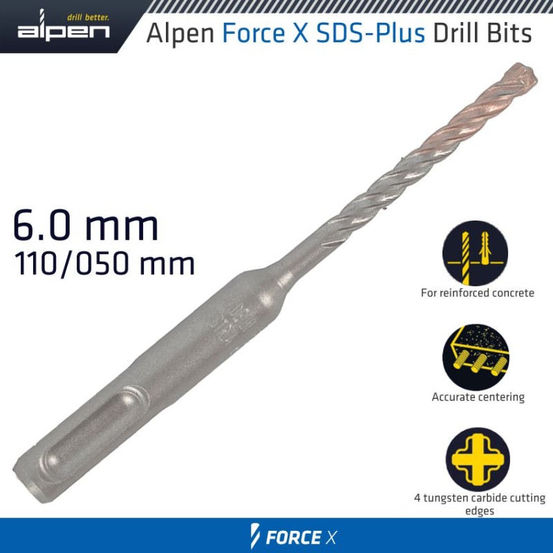 FORCE X 6.0 X 110/050 SDS-PLUS DRILL BIT X4 CUTTING EDGES - BULK