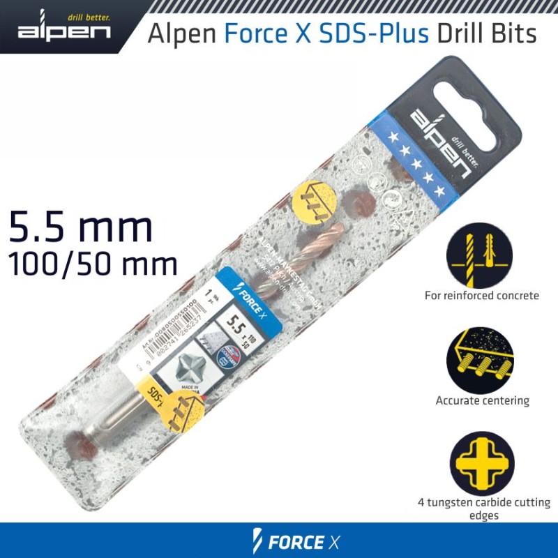FORCE X 5.5 X 110/050 SDS-PLUS DRILL BIT X4 CUTTING EDGES