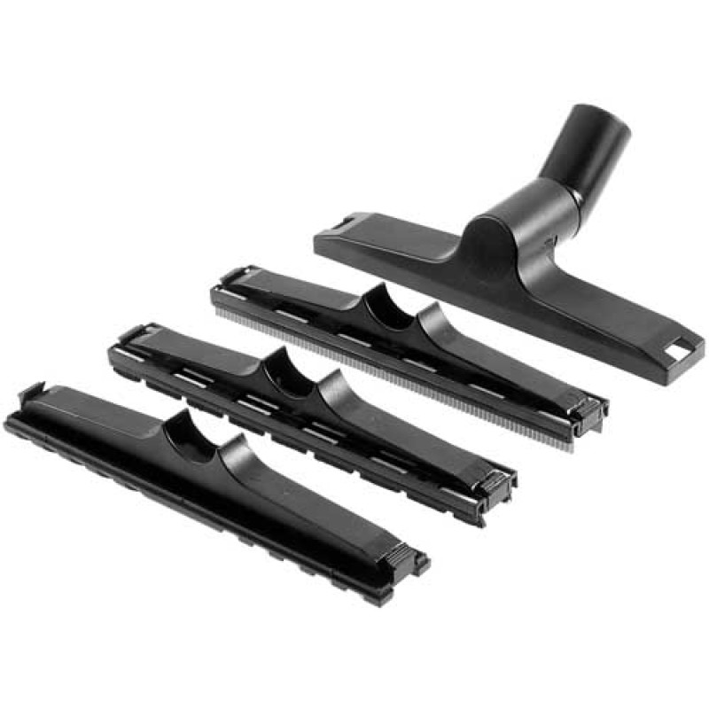 - 4 pieces, plastic, with 3 replaceable inserts (brushes, rubber lips, carpet)