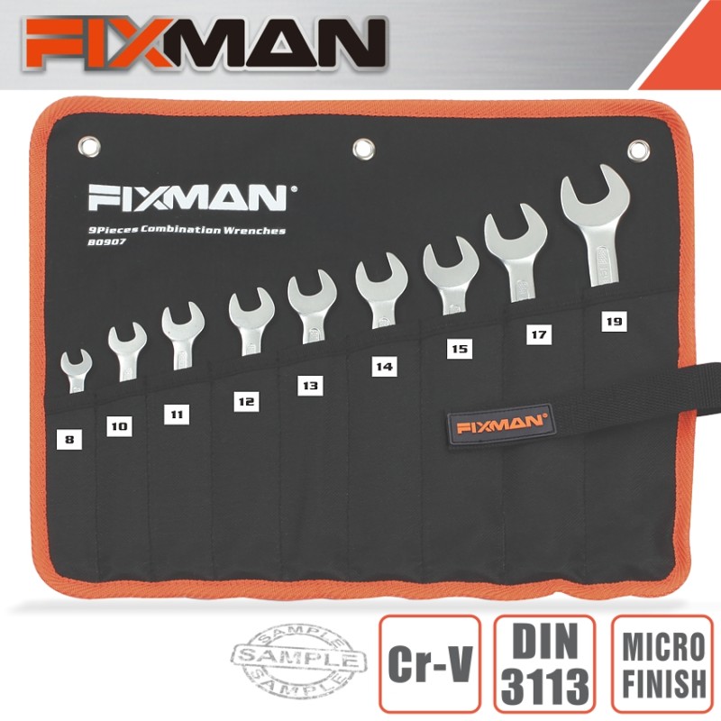 FIXMAN 9PCS COMBINATION SPANNER SET 8-10-11-12-13-14-15-17-19
